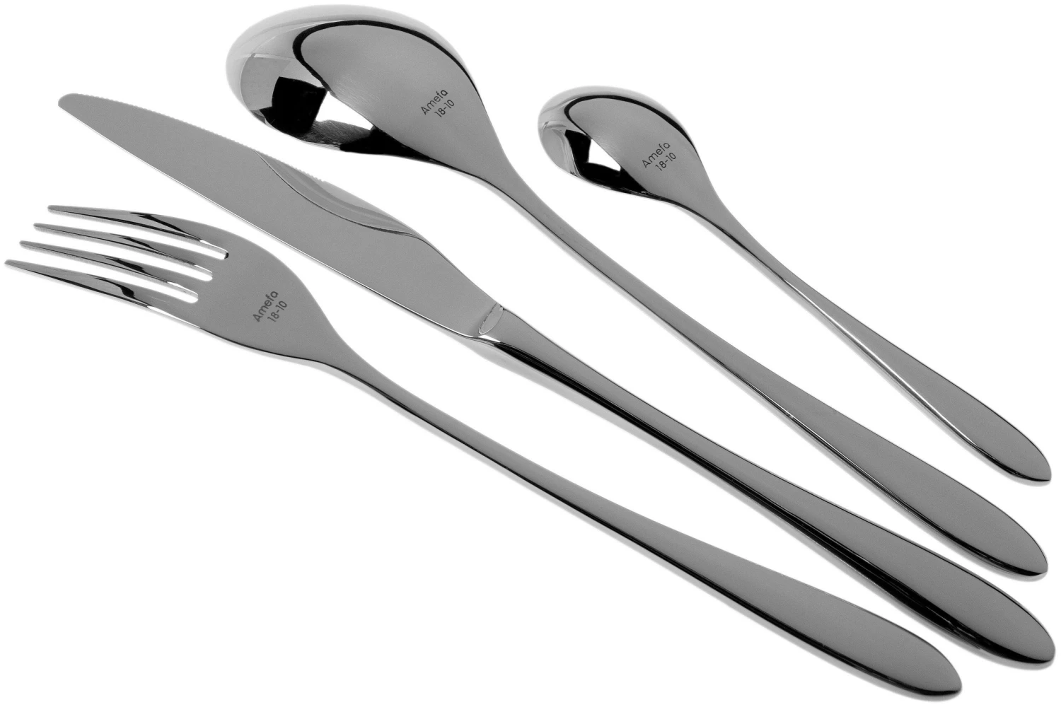 L’Amefa Cuba est un modèle forgé avec une forme décorative et élégante. Ce modèle Cuba donne de l’allure à vos repas. Cette collection a été réalisée avec beaucoup de soin et de précision en chrome-nickel, plus connu sous le nom d’acier inoxydable 18/10. Cette collection est donc très résistante à la rouille et aux tâches. Ces modèles sont parés d’une finition très brillante, ils peuvent donc aller au lave-vaisselle.