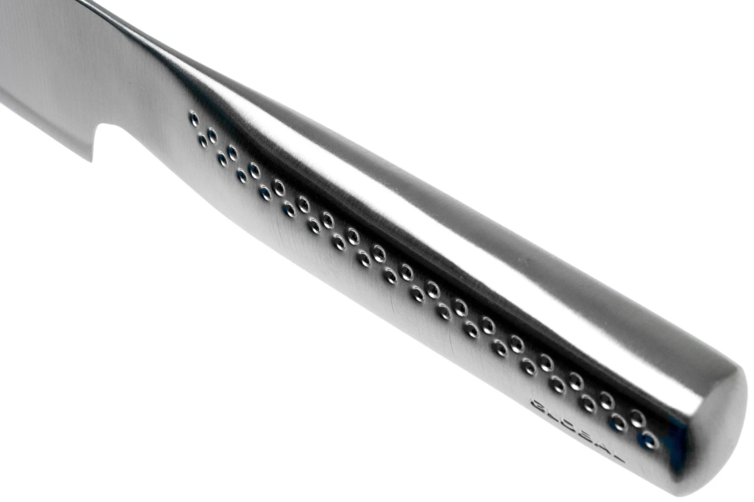 Avec une lame de 23 cm de long, le couteau à viande Global Ni GN-005 est le plus grand de la gamme. Parfait pour couper de gros morceaux de viande comme le faux filet ou encore le jambon. La fourchette à viande Global Ni GNC-01 offre un ensemble très pratique.