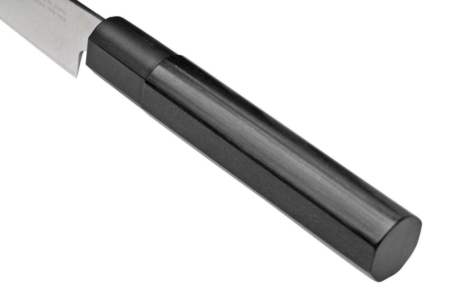 Le Yanagiba 18 cm Kai Seki Magoroku Kinju est idĂ©al pour lever des filets de poisson et couper de la viande. Ce couteau traditionnel japonais a un design très Ă©purĂ©, grâce Ă son manche hexagonal en bois laminĂ© renforcĂ©. Il s’agit d’un design très classique, très confortable en main, qui sera un ajout très esthĂ©tique Ă votre cuisine.