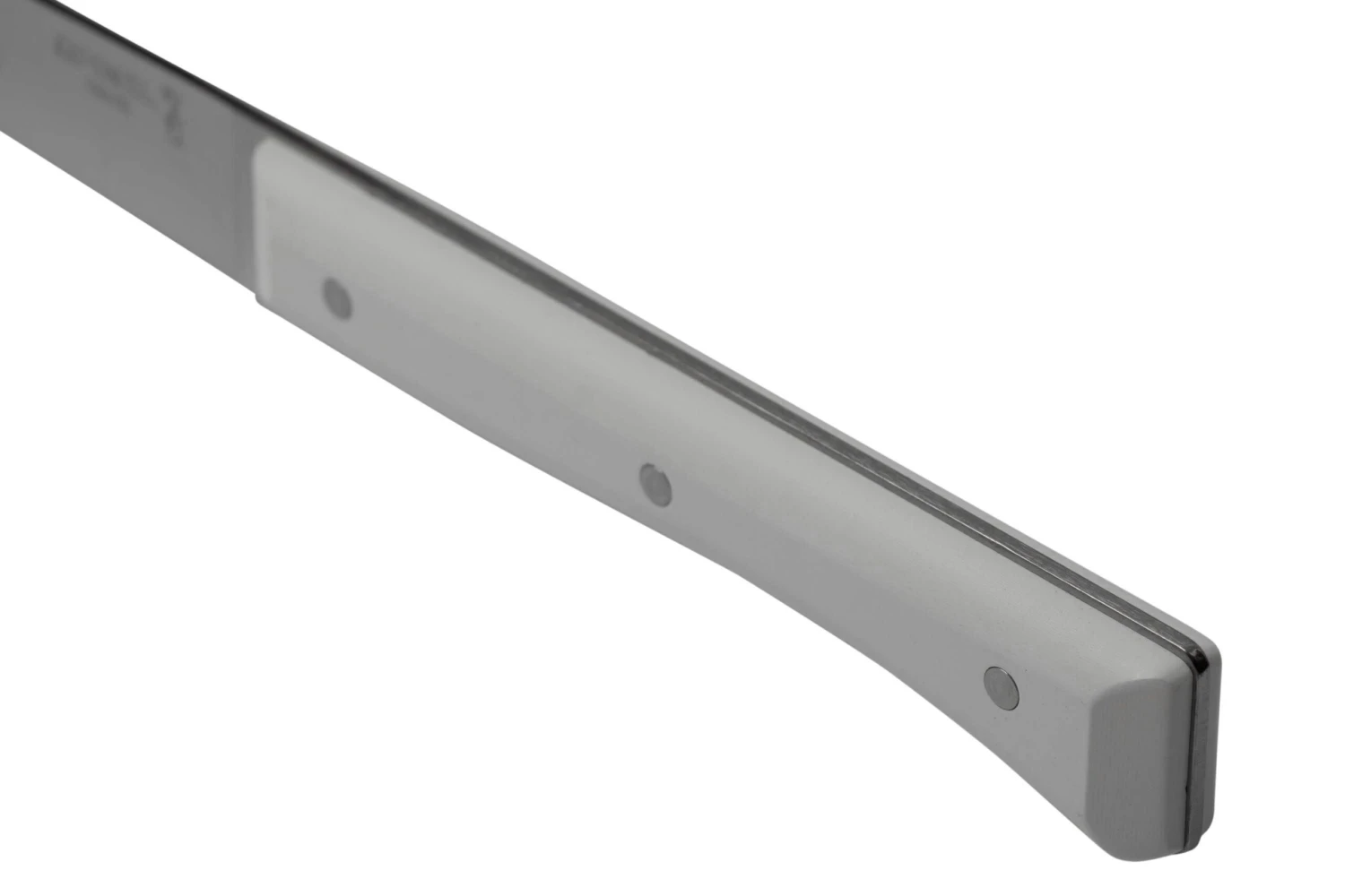 L’Opinel facette est une collection de couteaux fabriquée en France. Les modèles de cette collection sont disponibles dans différents coloris. L’Opinel facette white box se compose de quatre couteaux de table avec une lame en acier inoxydable en pleine soie et un manche fait en papier pressé.