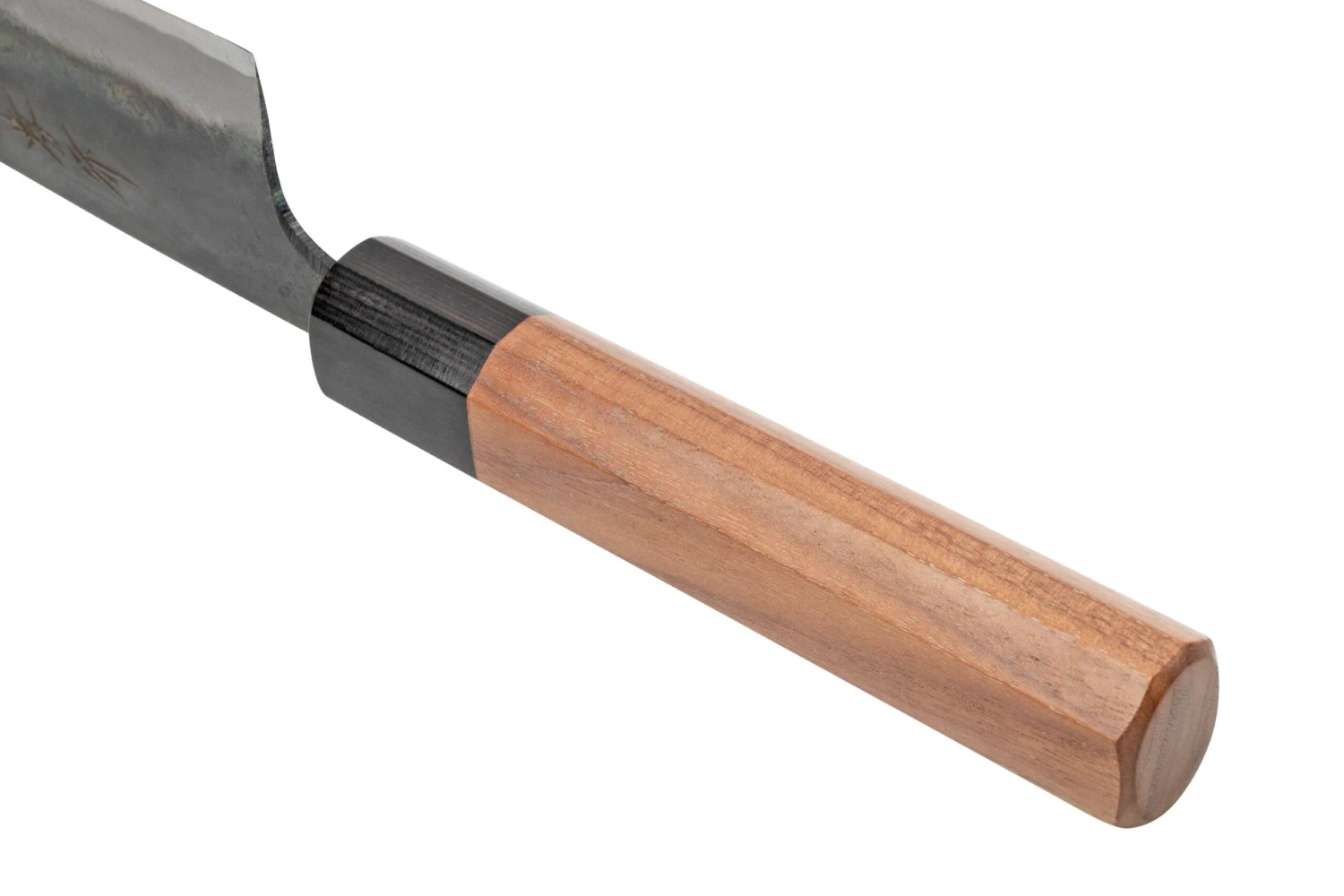 Le santoku Sakai Takayuki Blue 2 Kurouchi 01172 wa est un couteau de cuisine japonais incroyablement polyvalent. Le santoku est la version japonaise du couteau de chef. Sa lame, relativement petite, est parfaite pour couper finement les lĂ©gumes, la viande, le poisson, l’oignon, l’ail et bien sĂ»r toutes sortes d’herbes aromatiques. Ce santoku a une lame de seulement 17 cm de long. Vous avez donc un excellent contrĂ´le sur la lame grâce Ă son petit format et son poids plume.