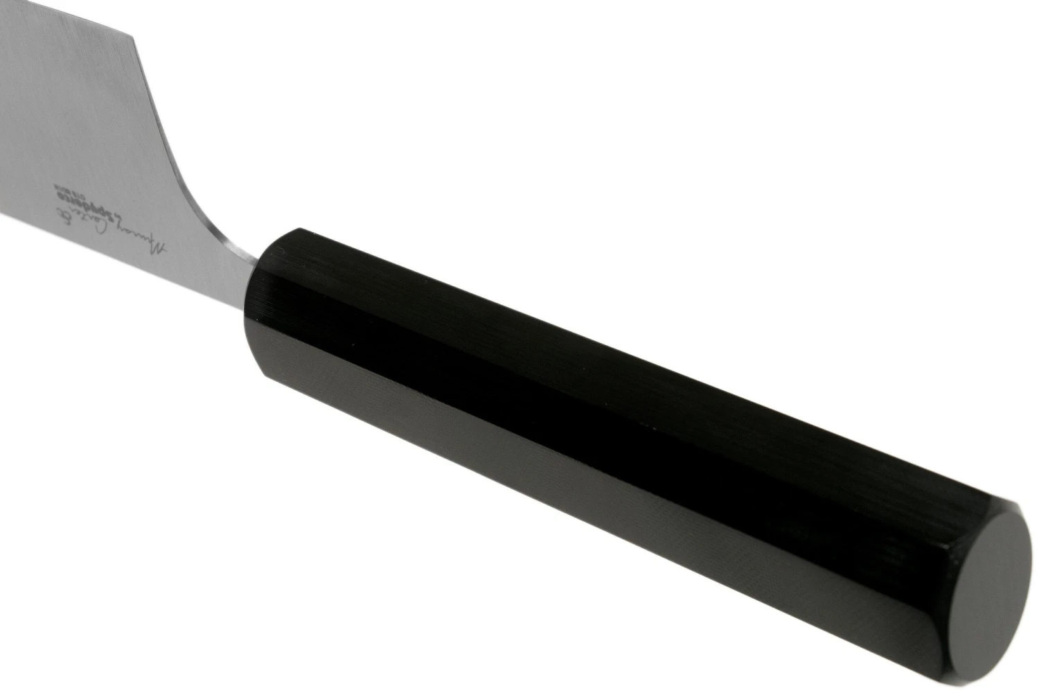 Le nakiri Spyderco Wakiita de la collection Murray Carter est tout simplement sublime. Nakiri signifie ‘trancheur de légumes’. Sa forme rectangulaire unique est parfaite pour couper les légumes. La pointe du couteau est légèrement arrondie afin de couper les légumes rapidement. Hacher des fines herbes est également un jeu d’enfant.