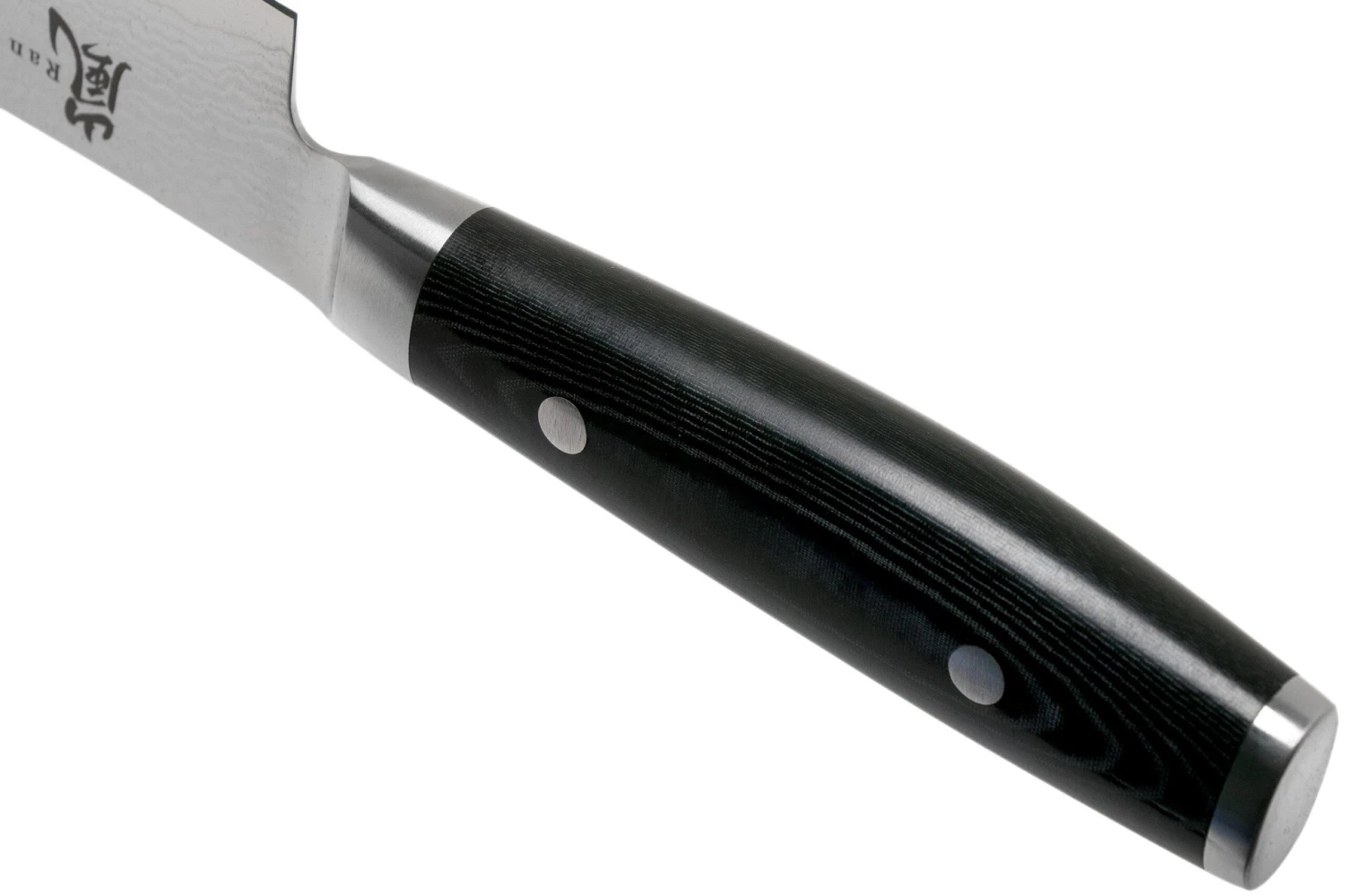 Le yanagiba Yaxell Ran est un gros couteau de cuisine japonais élégant. Ce couteau possède une lame longue de 25 cm, pour couper d’un seul mouvement à travers un morceau de viande ou de poisson. Cela évite d’avoir à “scier” les ingrédients. Absolument indispensable pour véritable amateur de sushi. Parfait pour trancher les rouleaux de maki ou bien les sashimis avant de les disposer sur les nigiris.